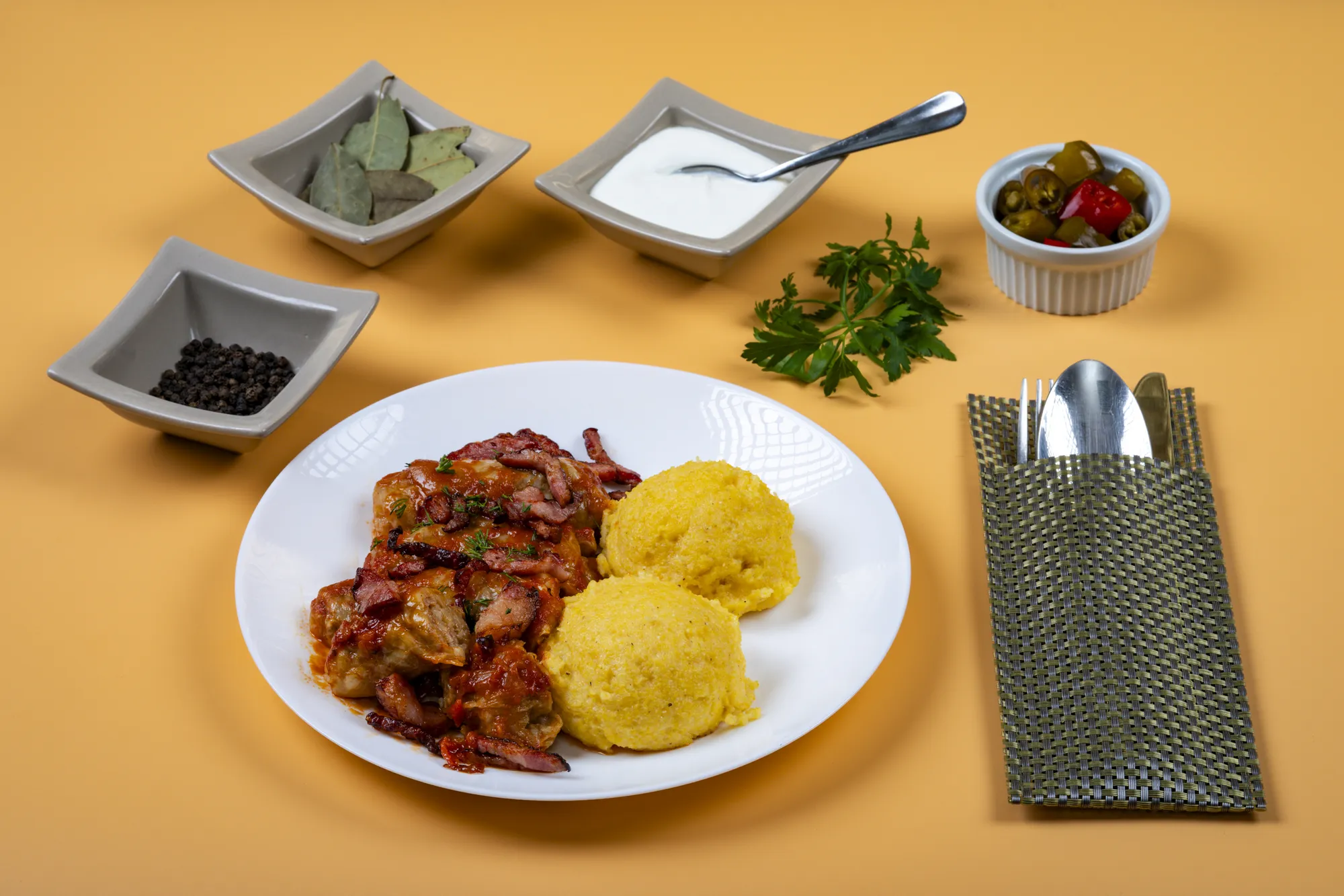 Sarmale cu carne de porc și ciolan afumat în sos de mărar